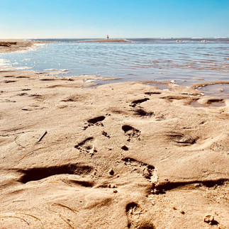 Wir genießen die fantastische Aussicht auf die vorgelagerte Sandbank, der sich im noch bewegenden Düne (1-5,5m pro Jahr) und machen uns schließlich wieder auf den Rückweg...Runter geht's eindeutig schneller als rauf 😆